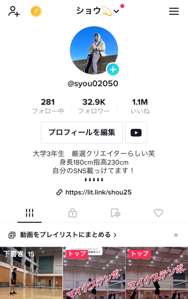 そしてSNSはTikTok フォロワー32.9k Instagram フォロワー550人と平凡です。。笑